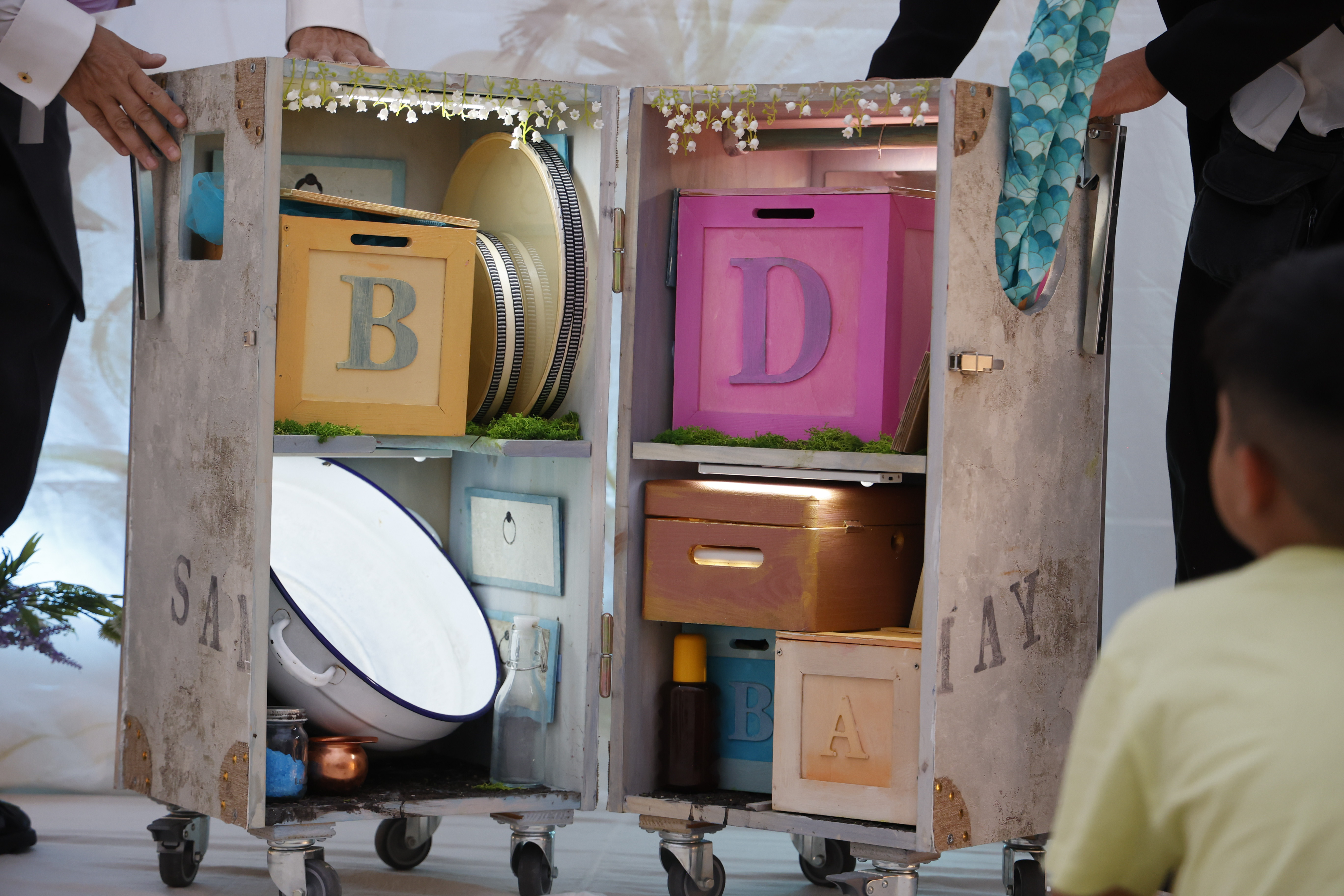 Dentro una gola di verzura immaginaria, al riparo dai rumori e dalle corse del mondo, si apre un varco bianco: un gazebo che non promette nulla ma custodisce tutto. Le sue pareti sono morbide come un respiro, appena velate da luci che sfumano, e una musica lieve scorre come acqua nascosta tra le radici. Non c’è platea, non c’è distanza: soltanto un invito a entrare, uno alla volta, con il proprio nome pronunciato piano, come una chiave che apre la porta.Qui i bambini trovano un giardino che non ha alberi né fiori, ma li contiene ugualmente: nei suoni, negli odori, negli oggetti che si offrono senza fretta. È un giardino segreto non perché nascosto, ma perché intessuto della possibilità di rivelare qualcosa che ancora non si conosce di sé.